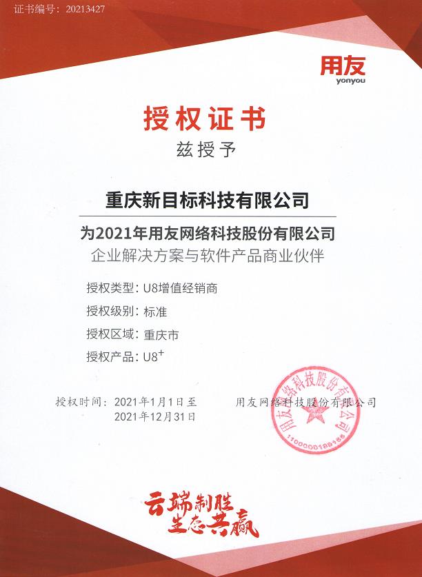 2021年用友增值經(jīng)銷商授權