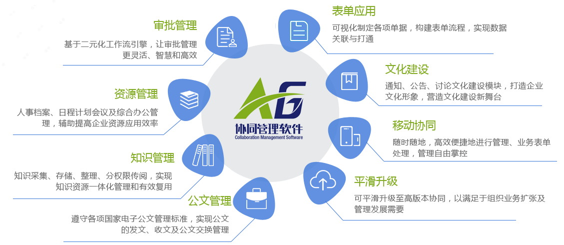 ●平滑升級(jí)至高版本的 A8 協(xié)同管理管理軟件,以滿足組織業(yè)務(wù)擴(kuò)張及管理發(fā)展需要。A8 協(xié)同管理軟件可實(shí)現(xiàn)集團(tuán)架構(gòu)管控、異構(gòu)系統(tǒng)集成、 高級(jí)表單業(yè)務(wù)生成器應(yīng)用、解決其他繁雜的業(yè)務(wù)場(chǎng)景流程設(shè)計(jì),建立完整有效的企業(yè)工作平臺(tái)。