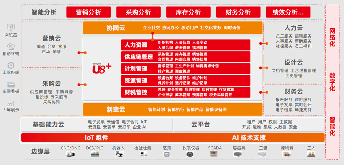 在企業(yè)上云的大趨勢(shì)下,U8+ 全面轉(zhuǎn)向互聯(lián)網(wǎng)方向,深入融合云應(yīng)用,一站式提供財(cái)務(wù)、營(yíng)銷、制造、采購(gòu)、設(shè)計(jì)、協(xié)同、人力等領(lǐng)域的“端 + 云”服務(wù),并通過軟硬一體化、產(chǎn)業(yè)鏈協(xié)同的策略全面賦能成長(zhǎng)型企業(yè)在技術(shù)、供應(yīng)鏈、生產(chǎn)、財(cái)稅、營(yíng)銷等領(lǐng)域的創(chuàng)新升級(jí)。為成長(zhǎng)型企業(yè)提供基于互聯(lián)網(wǎng)的業(yè)務(wù)協(xié)同、網(wǎng)絡(luò)交易、智慧運(yùn)營(yíng)的全新平臺(tái)。