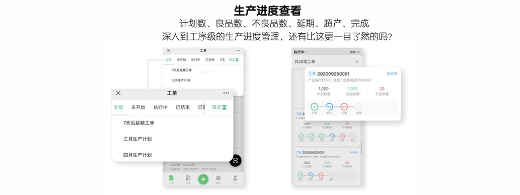 生產(chǎn)進度實時可查,異常信息實 時記錄,及時發(fā)現(xiàn)風險,減少浪 費快速分配生產(chǎn)任務,規(guī)范化生產(chǎn) 作業(yè),防呆防錯,減少生產(chǎn)等待 時間